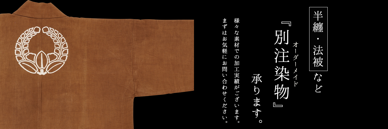 半纏(はんてん)・法被(はっぴ)・浴衣(ゆかた)・よさこい衣裳など、お客様のご要望に合わせてオーダーメイド承ります。